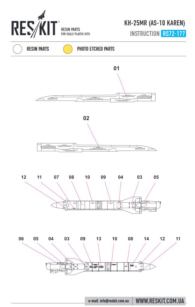 RESKIT 720177 1/72 Kh-25MR AS-10 Кельн Смола воздух-земля ракет и стойки APU-68