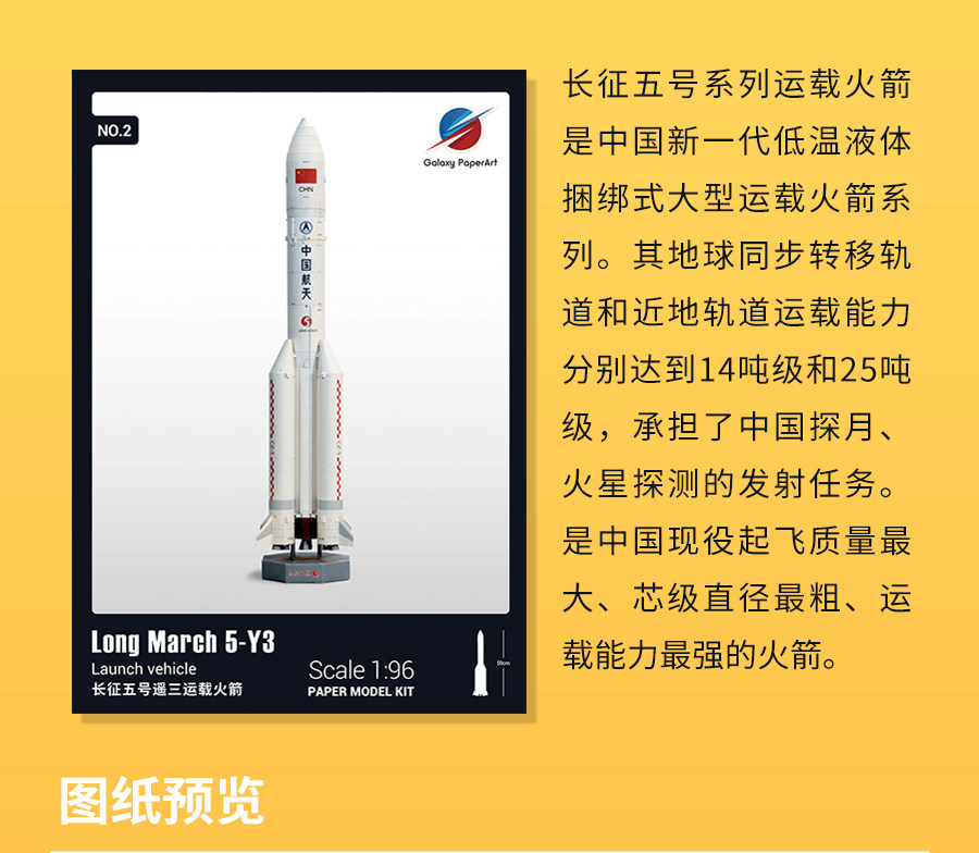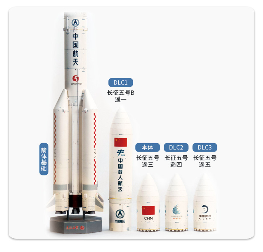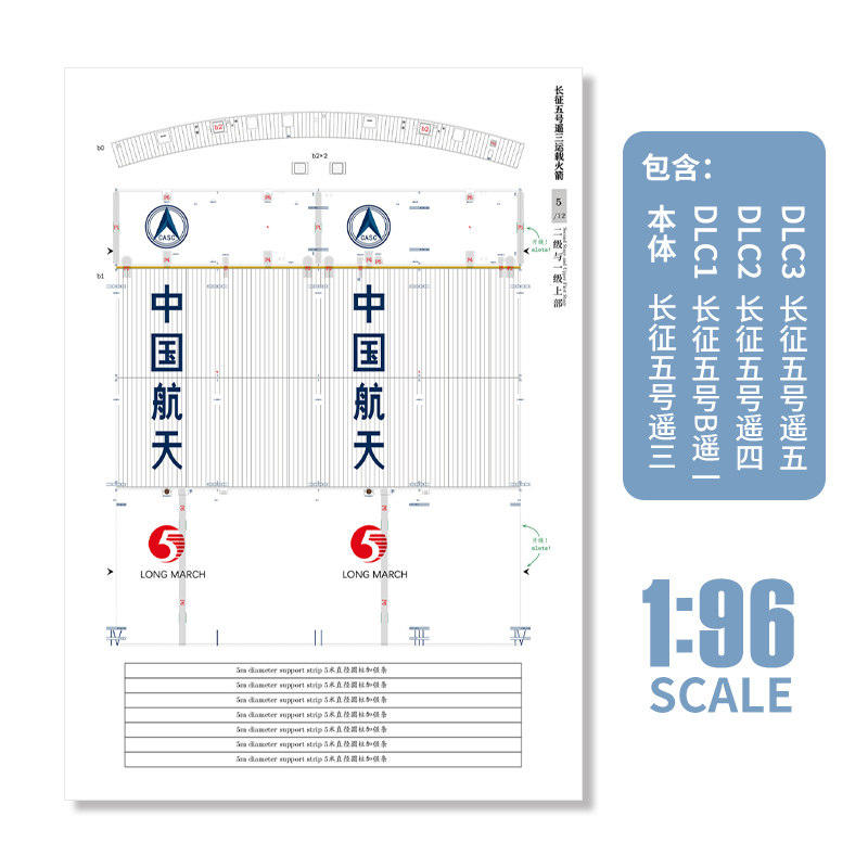 Китай Long 5 марта Lange Rocket 1:96 Подлинная бумажная модель China Aerospace Long Five Five Five Five Original Design