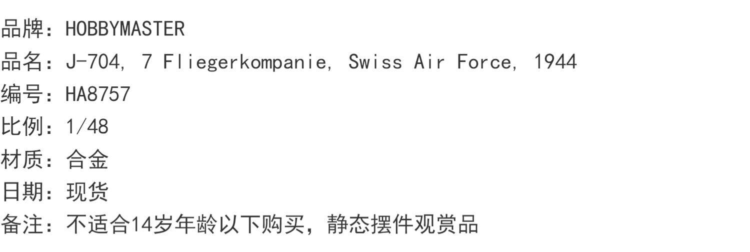 HA8757 Swiss Air Force 109 Fighter J-704 7 Fliegerkopanie 1944
