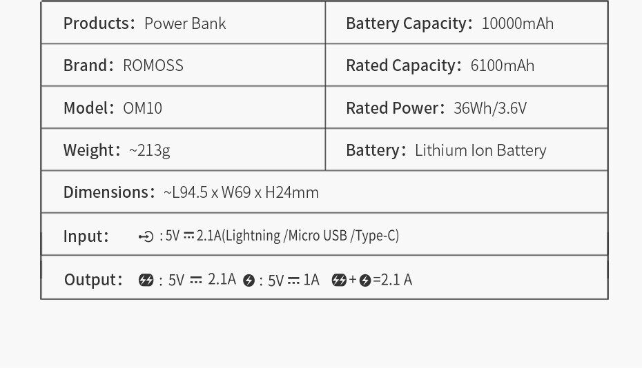 Romoss OM1000MAH Power Bank с двойным кабелем порта SB EX