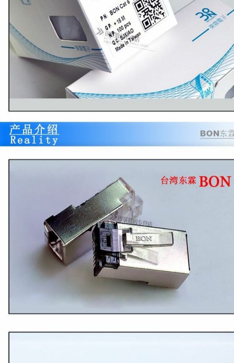 Bon Donglin Six категория Gigabit Shield сетевая линия промышленная кристаллическая головка FTP разъем RJ45 Crystal Head Cat6