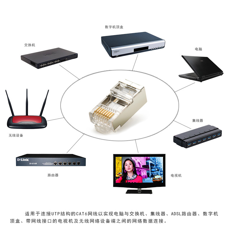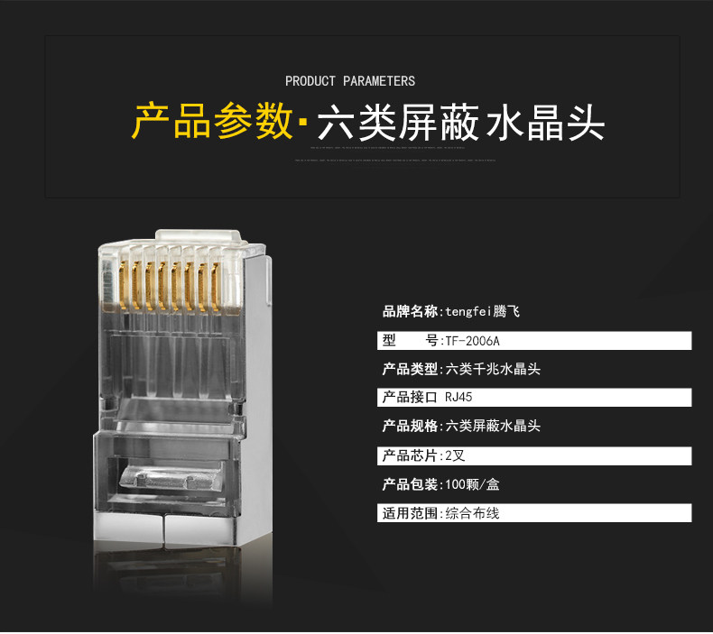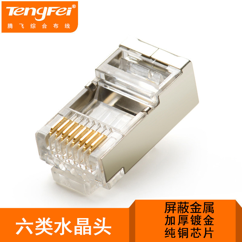 Tengfei Super Six Six типы экранированной кристаллической головки FTP Gigabit сеть Crystal Head Metal Shell сетевой кабель Кристаллический разъем 100