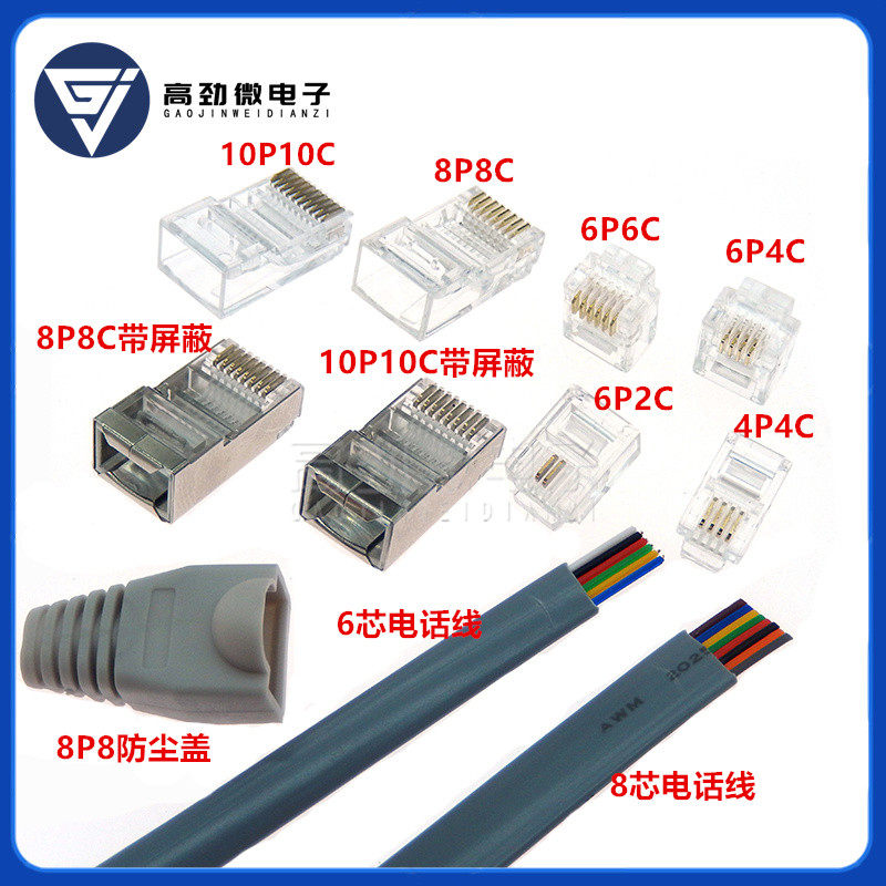 Кристаллическая головка RJ45 6P2C RJ11 Crystal Hever Hever Hever Head 4p4 6p4 6p6 8p8 Телефонный кабель