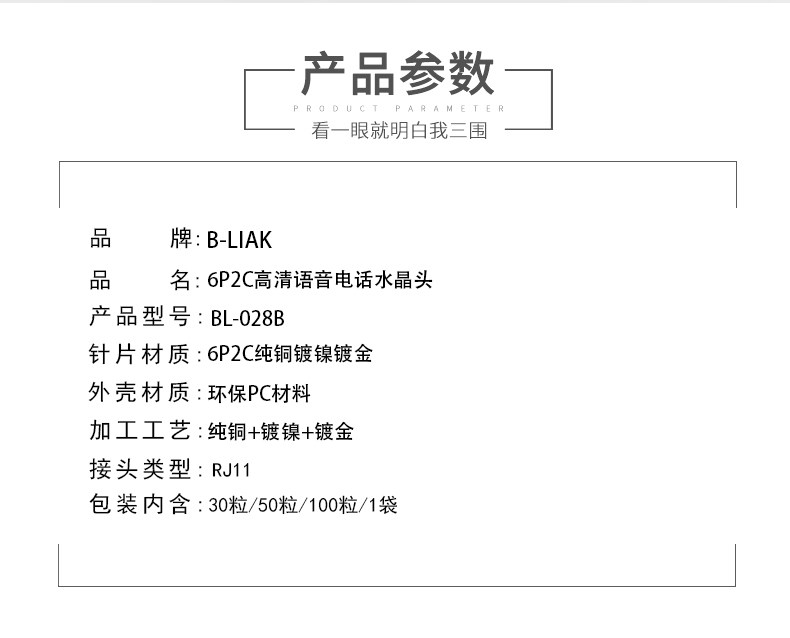 B-Liak 6p2c Телефонная хрустальная головка 2-яерная телефонная головка Crystal Head RJ11 Crystal Head Head Head Head Head