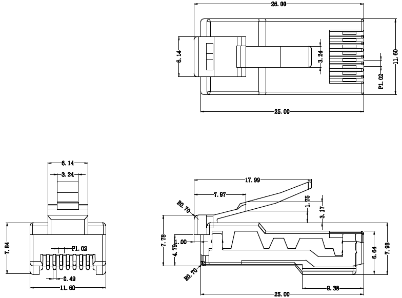 RJ45 8P8C Длинное соединение золотого чипа двухсерочная переменная частота заглушка с переменной головкой квадрат 26 мм