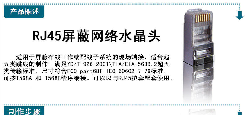 Металлический экранирующий слой используется для соответствия стандартам Super Five стандартов передачи и используется для конечного соединения оборудования между оборудованием или экранированием горизонтальной подсистемы; прочная прочность и вязкость выстрела - это хорошо, медь Лист с золотым набором, а производительность трансмиссии контактов очень хороша. Сетевый кабель экранирования Cat5, сетевой кабель FTP CAT5E, ожидающий выделенного разъема экранирующего провода; тип оборудования: RJ45 Экранирующая кристаллическая головка Применимо.Проект проводки
