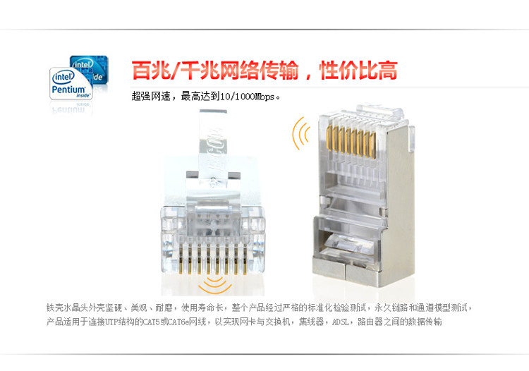 Super Six Gigabit Metal Shield 8 Core RJ45 Crystal Head Head