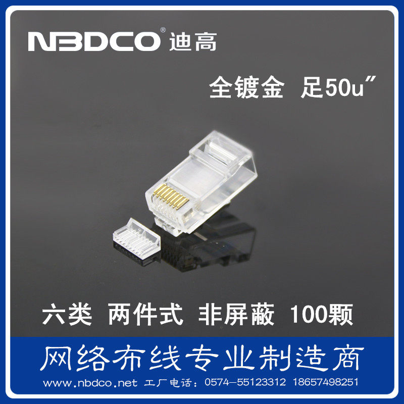 NBDCO Шесть -тип двух -купюрный золотой куплет 50U «Кристаллический кабель головка 6 тип 6 сеть RJ45 Соединительная головка 100