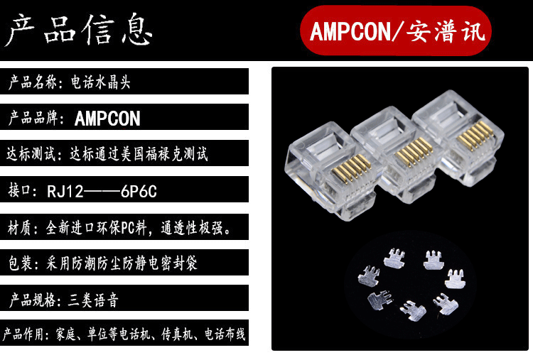 ANPX Engineering Gold -Planted 6 -Core Thone Crystal Head Rj12 Шесть -сравнительный хрустальная головка 6p6c Телефонная линия хрустальная головка бесплатная доставка
