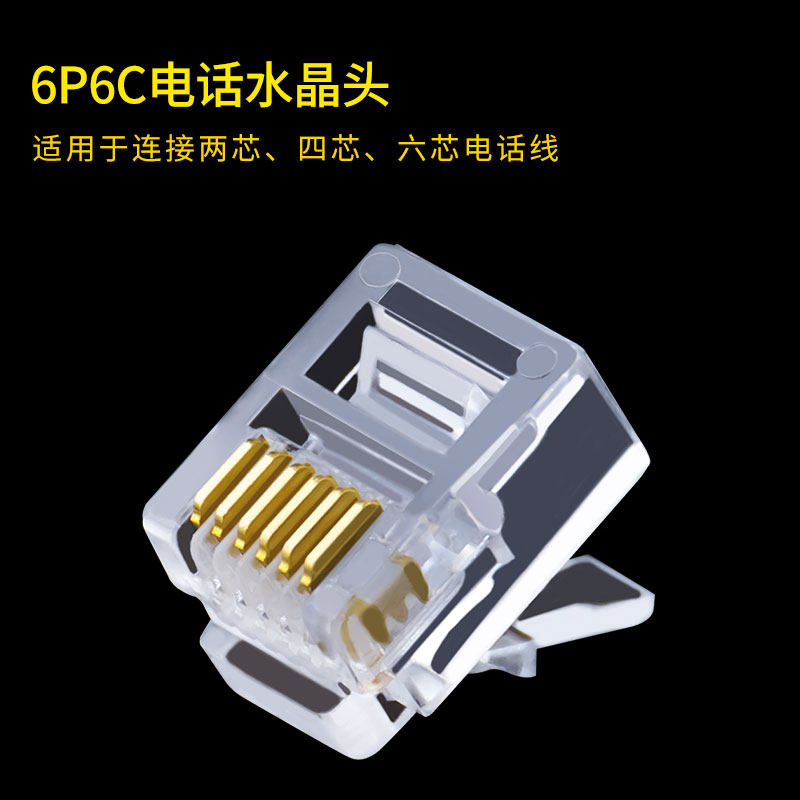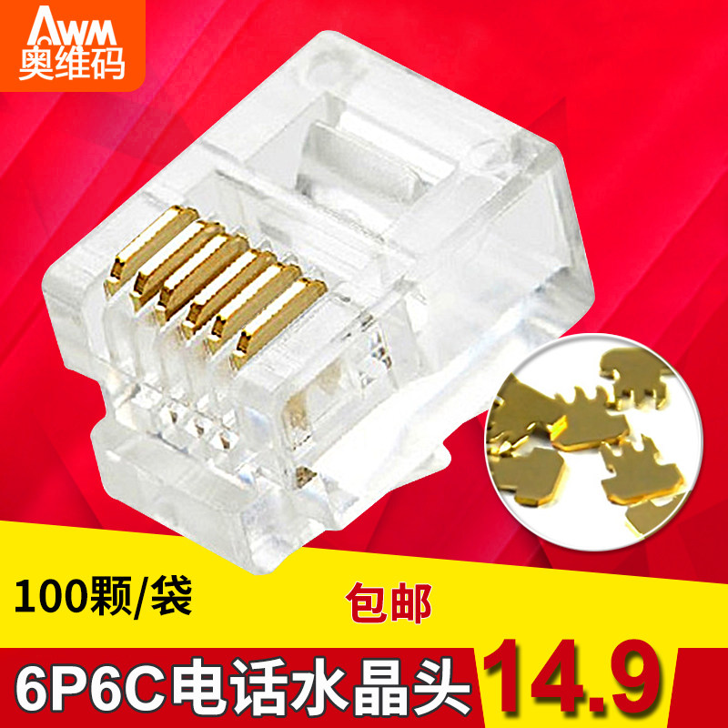 Чистое медное золото, треугольное 6p6c RJ11 Chrish Crystal Head шесть основной телефонной линии Crystal Head 100 Бесплатная доставка