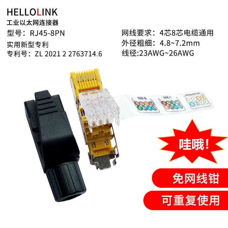 Hellolink Industrial Anti -Vibration RJ45 Восемь основной профинит -кристаллической головки сетевого кабеля EtherCat сетевой кабель
