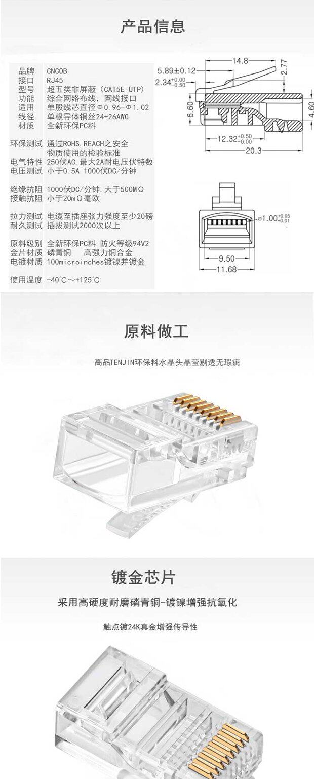 15 -Year -SOLD Магазин более 20 цветовых сетей более пяти или шести типов экранированного 8 -го покрытия золота RJ45 Crystal Head 2 Head 2