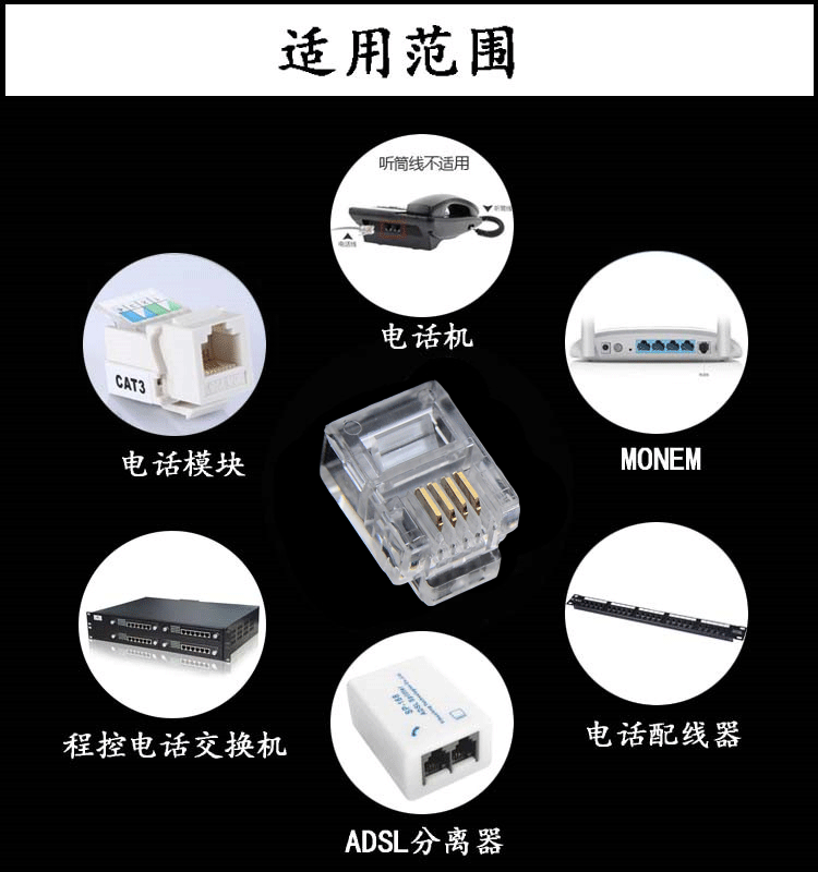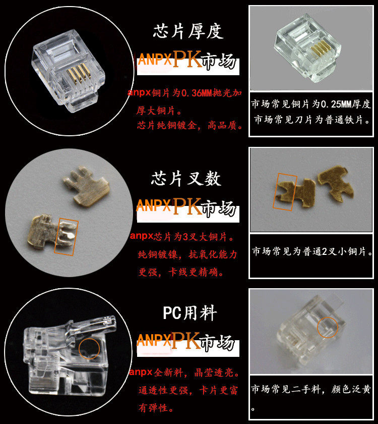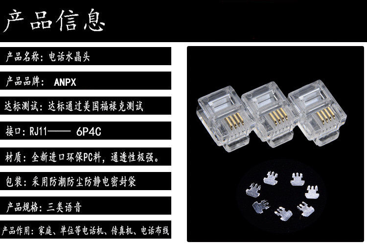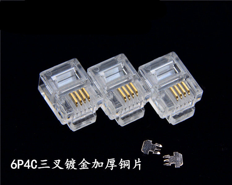 ANPX Project 6P4C Gold -Plosted Four -Core Phone RJ11 6P2C 6P6C Двухноморская телефонная линия Crystal Connector