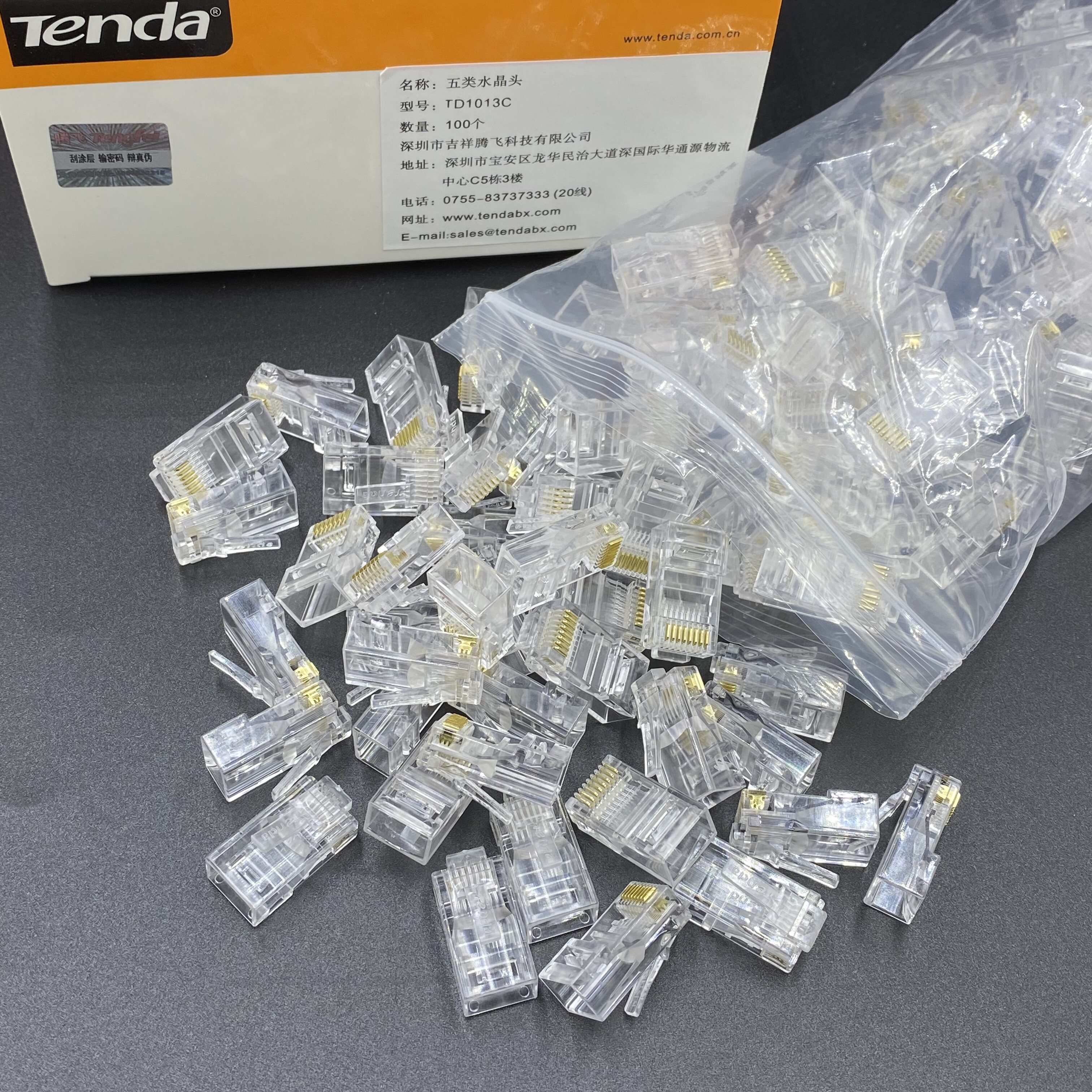 Подключение кристаллической головки Tengda Одна коробка оснащена 100 подлинными супер -пятью типами кристалла неэлизованного сетевого кабеля RJ45
