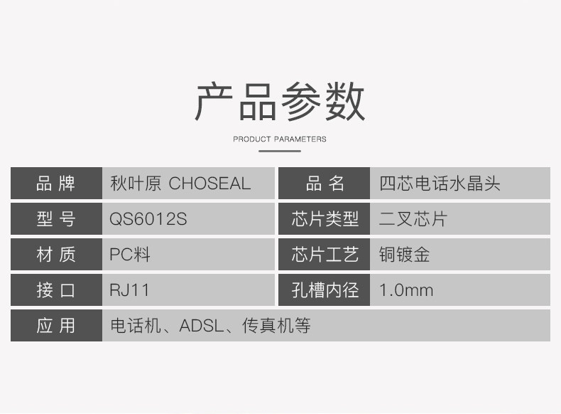 Akihabara QS6012 Chrish Crystal Head 4 -Core Four -Core Crystal Head RJ11 Телефонная линия Crystal Head 6p4c Head