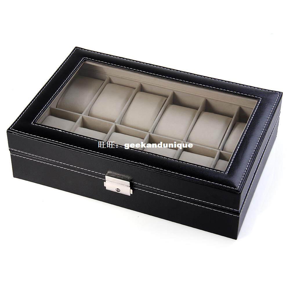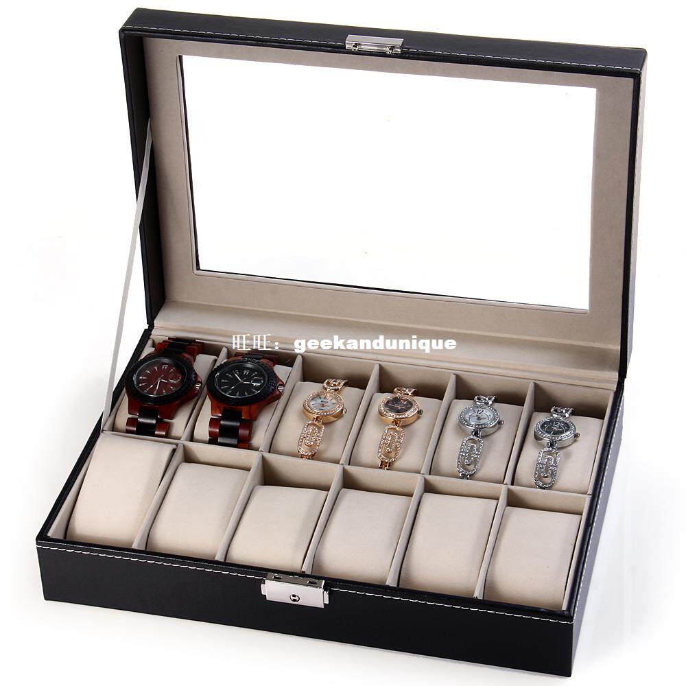 Fashionable watch storage box with12 grids and glass window