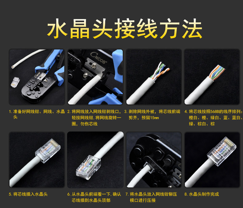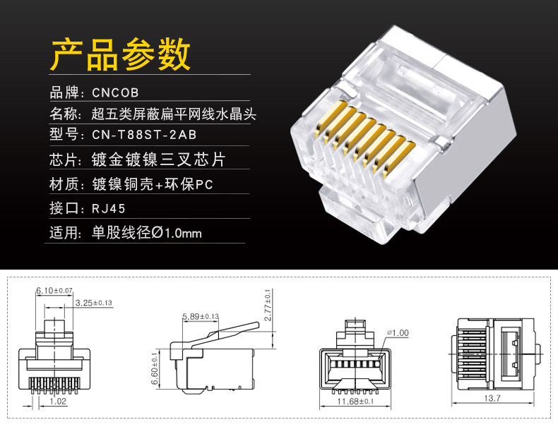[30 штук] CNCOB Super Five Types из 100 м плоского сетевого кабеля Специальная кристаллическая головка Компьютерная сеть широкополосная головка