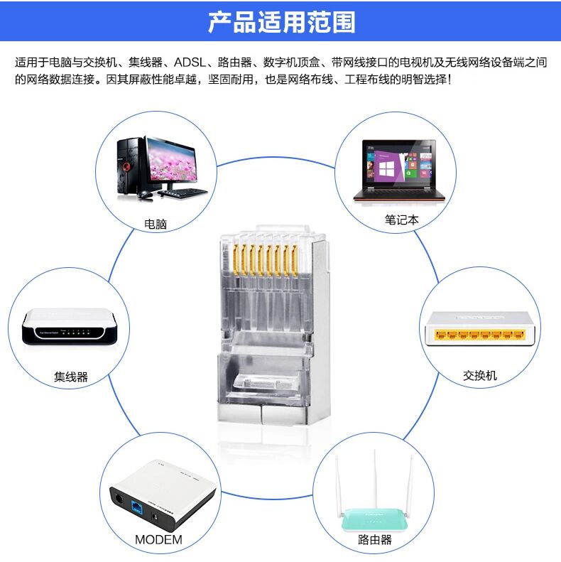 Экранирующая сеть кристаллическая головка RJ45 Super Five типа из шести типов из шести типов сетевого кабеля подключение головки 8p8c восемь ядерных поры Cat6 железа