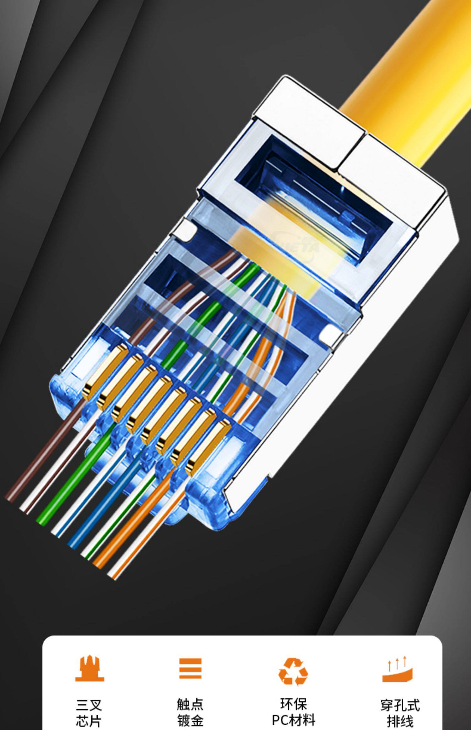 Гигабит более 6 6 разъемов экранированной кристаллической головки 8p8c Перфорированные поры RJ45 сетевой кабель.