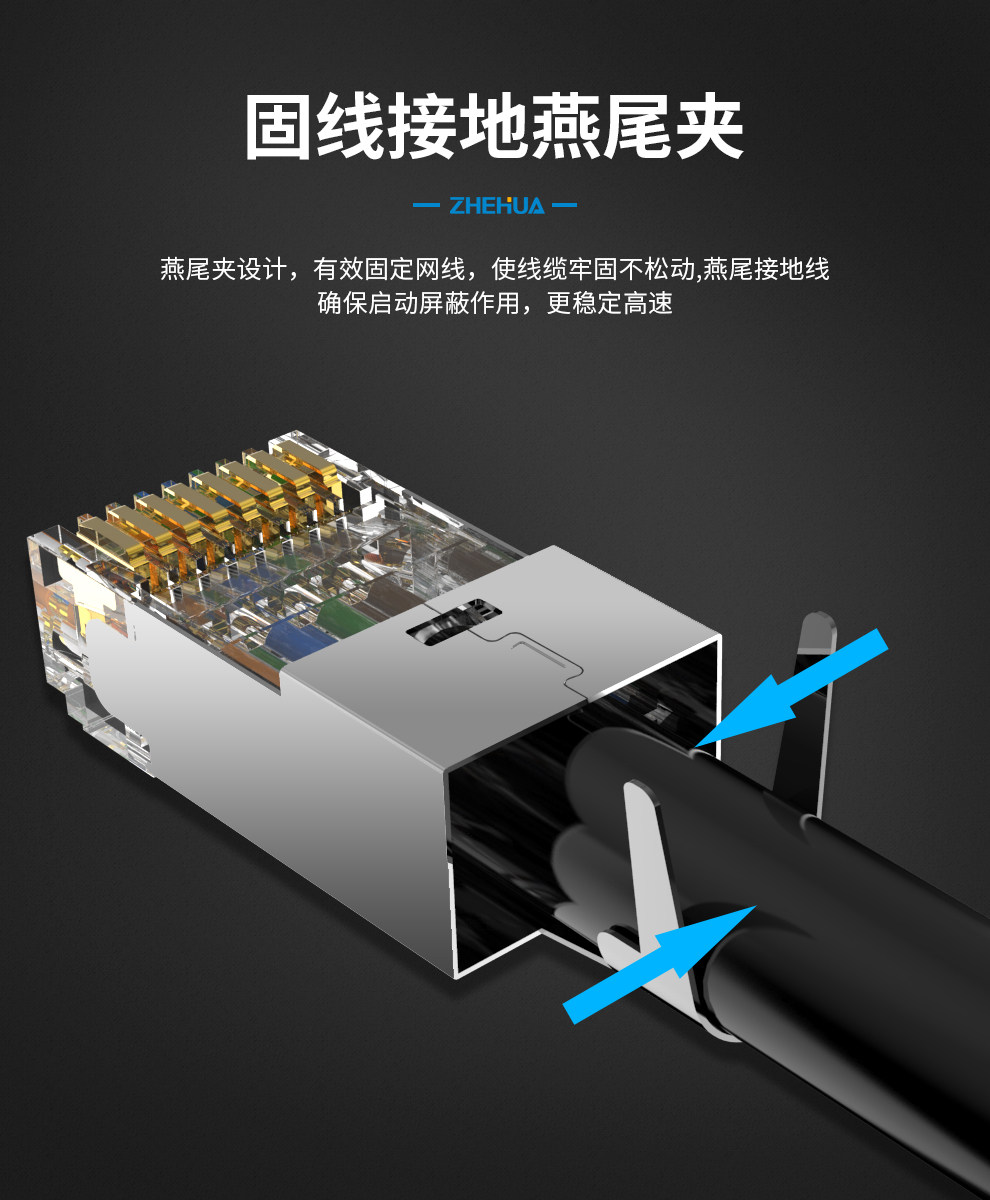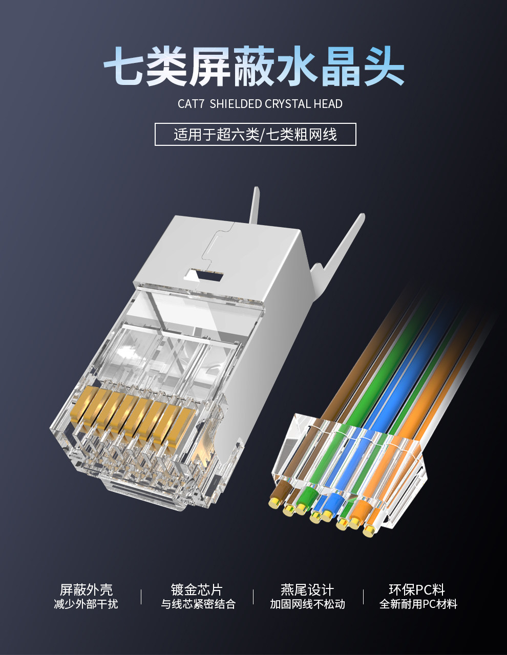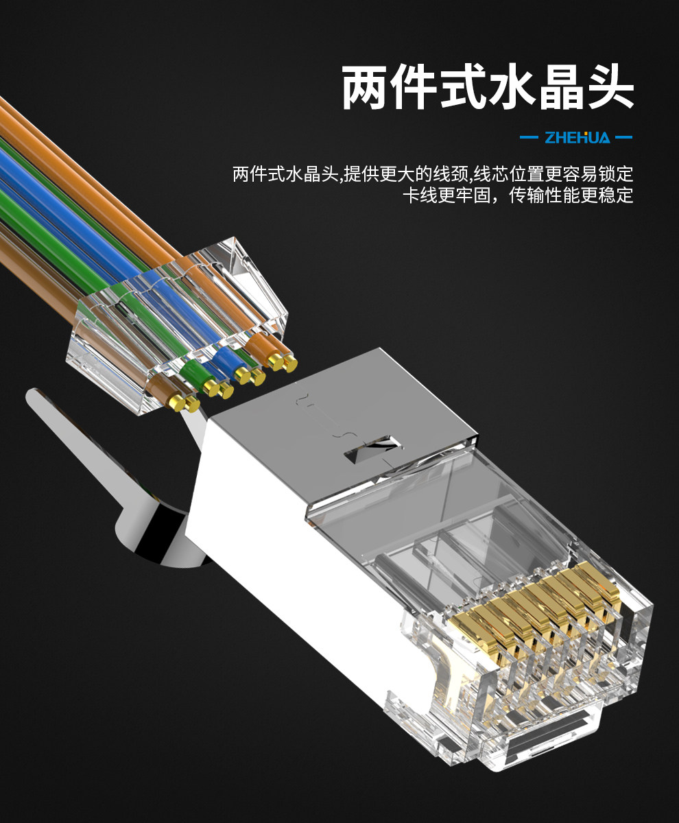 Zhejiang Hua Семь семи типов сетевой хрустальной головки Cat7 Золото.