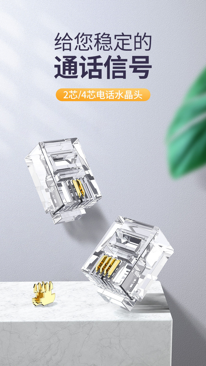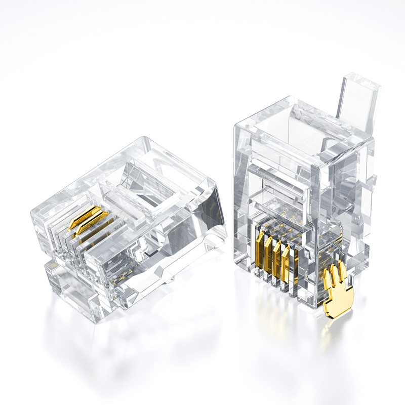 Зеленый Union Phone Crystal Head 2/4 Четырехкорночный телефонный стационарный разъем RJ11 разъем 6P2C4C Плагин