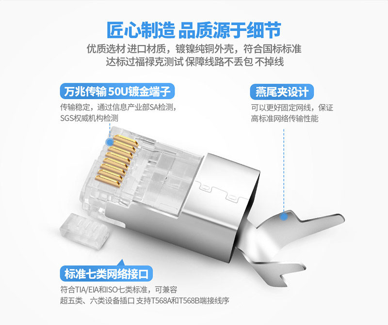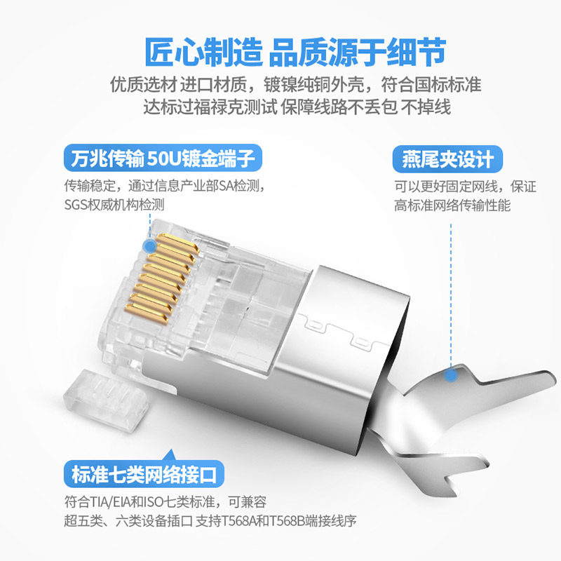 Сетевой кабель 7 более 55 Семь семи семи металлических металлических RJ45 Двойной экранированный головка Crystal 6 6 -6 разъем сети разъема