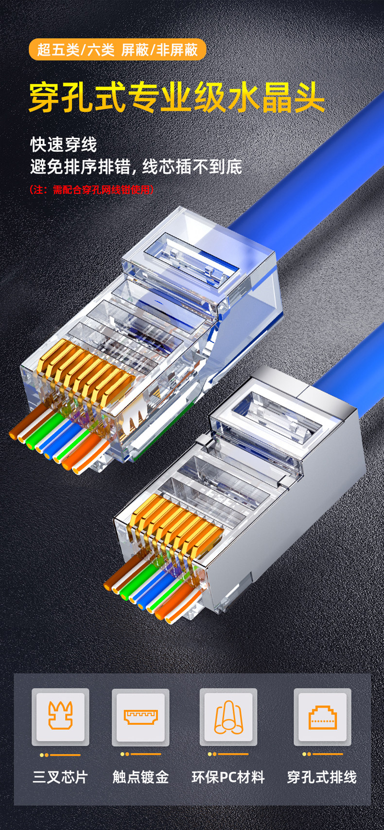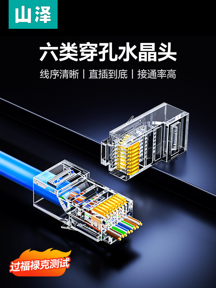 Кристаллическая головка Shanze Категория 6 со сквозным перфорированным отверстием Категория 5e 6 Гигабитный сетевой кабель Разъем кабеля сетевого мониторинга rj45