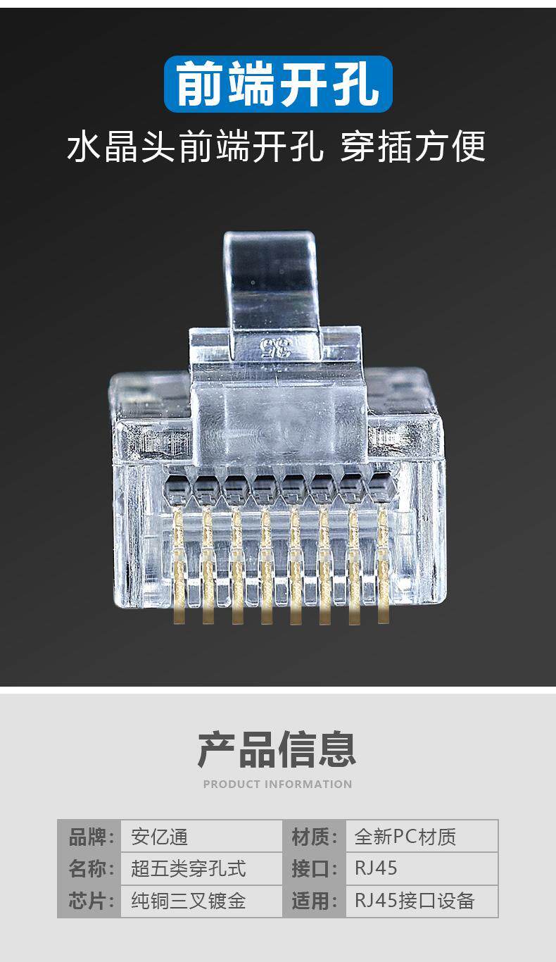 Tengda Super Five -Type Перфорированная сеть Crystal Head RJ45 Pure Copper Tenda Six типа 8 -коррек