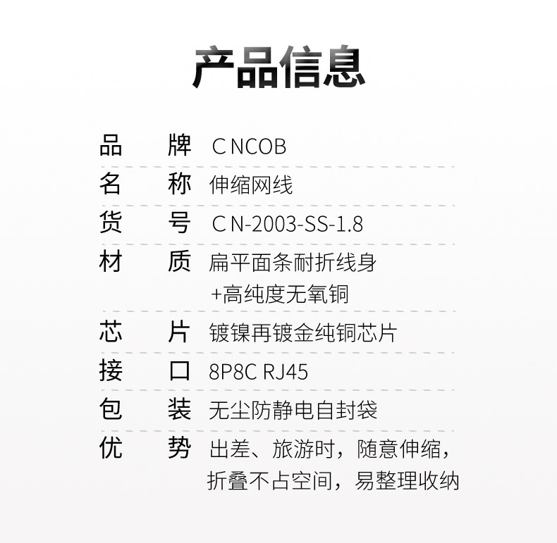 CNCOB SIX Категория Гигабит Плоский телескопический сетевой кабель Портативный ноутбук RJ45 СЕНИЧЕСКИЙ СЕНИЧЕСКИЙ СЕВЕТА 1,8 метра