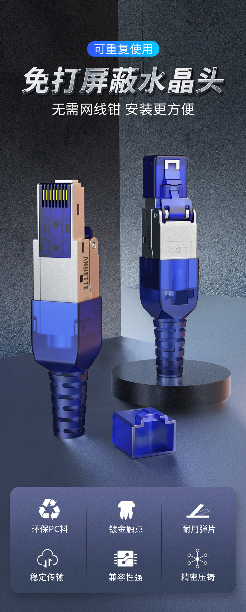 Супер шесть типов 788 -8 8 -8 8 Бесплатные инструменты без кристаллической головки для подключения сетевого кабеля Кристаллическая головка 7 Типов домашней бесполезной кристаллической головки