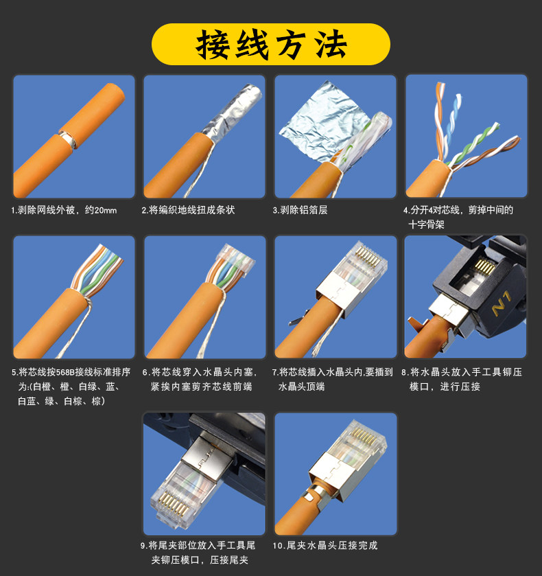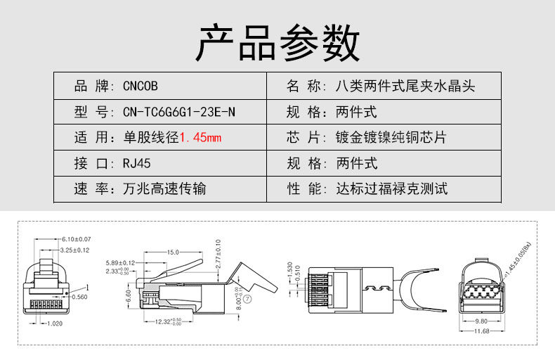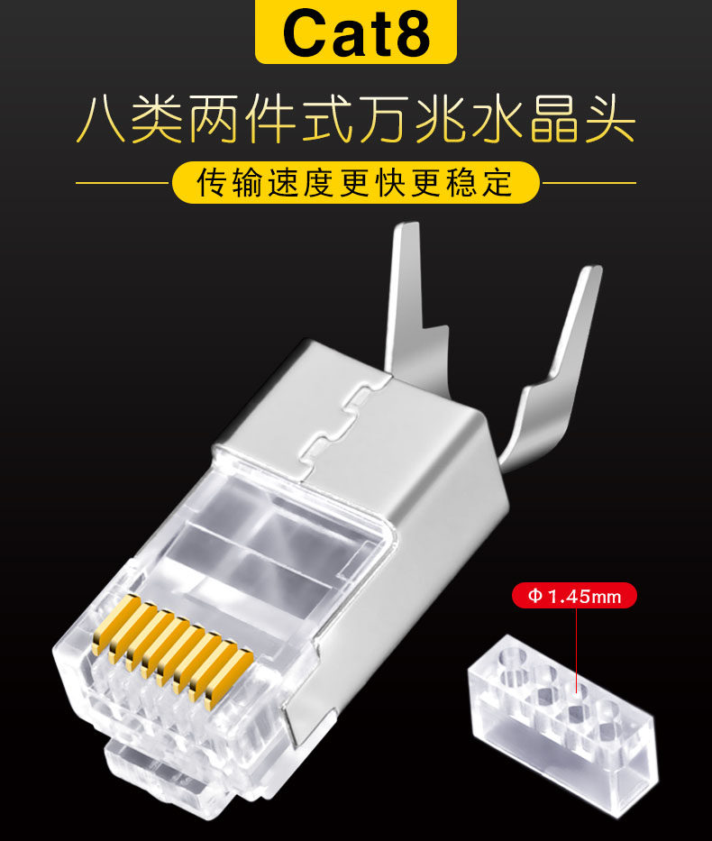CNCOB восемь -тип двух -купюр хвостовых зажиг сеть Crystal Head Cat8 Ultra -Seven Tipes экранирующего сетевого кабеля кристаллические головки