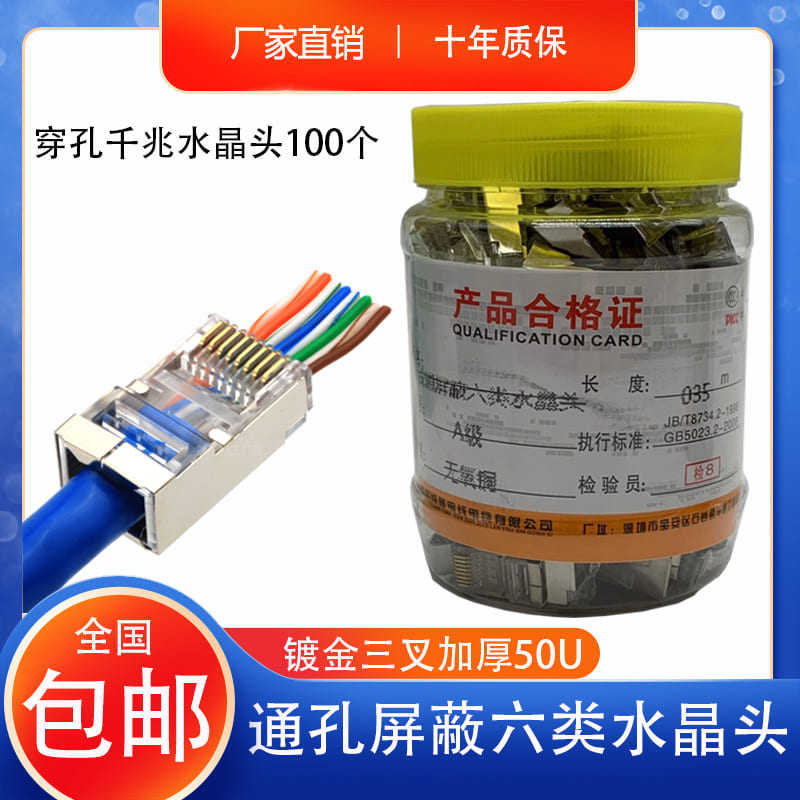 Гигабит более 6 шести -тип -тип -кристаллический экранинг RJ45 сетевой кабель 8P8C Computer Gold -Planted 8 -Core Connector