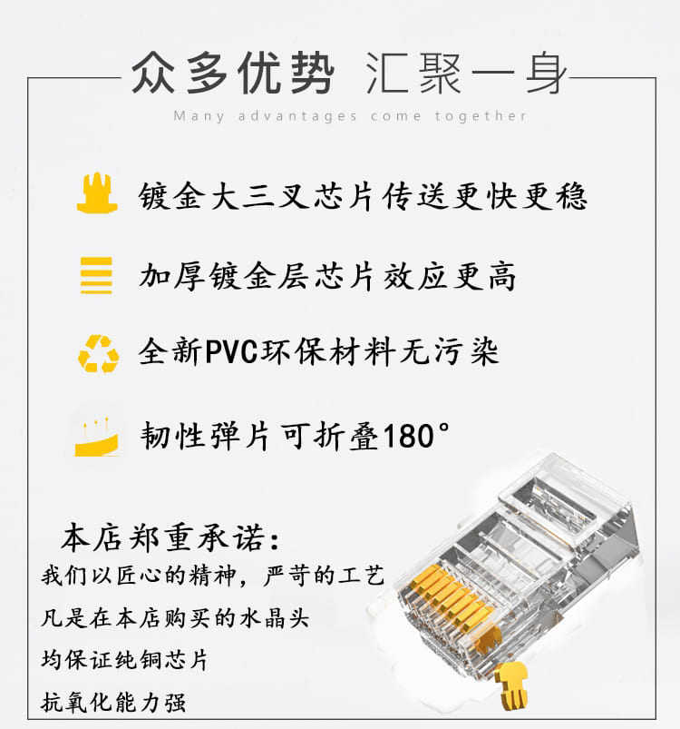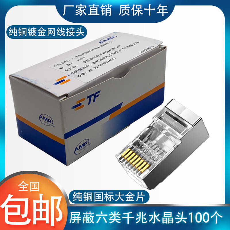 Золото -плановая Amp Anpy Cat6 Gigabit 8p8c Crystal Head Head RJ45 Super Six Category Twitter Jielin 100