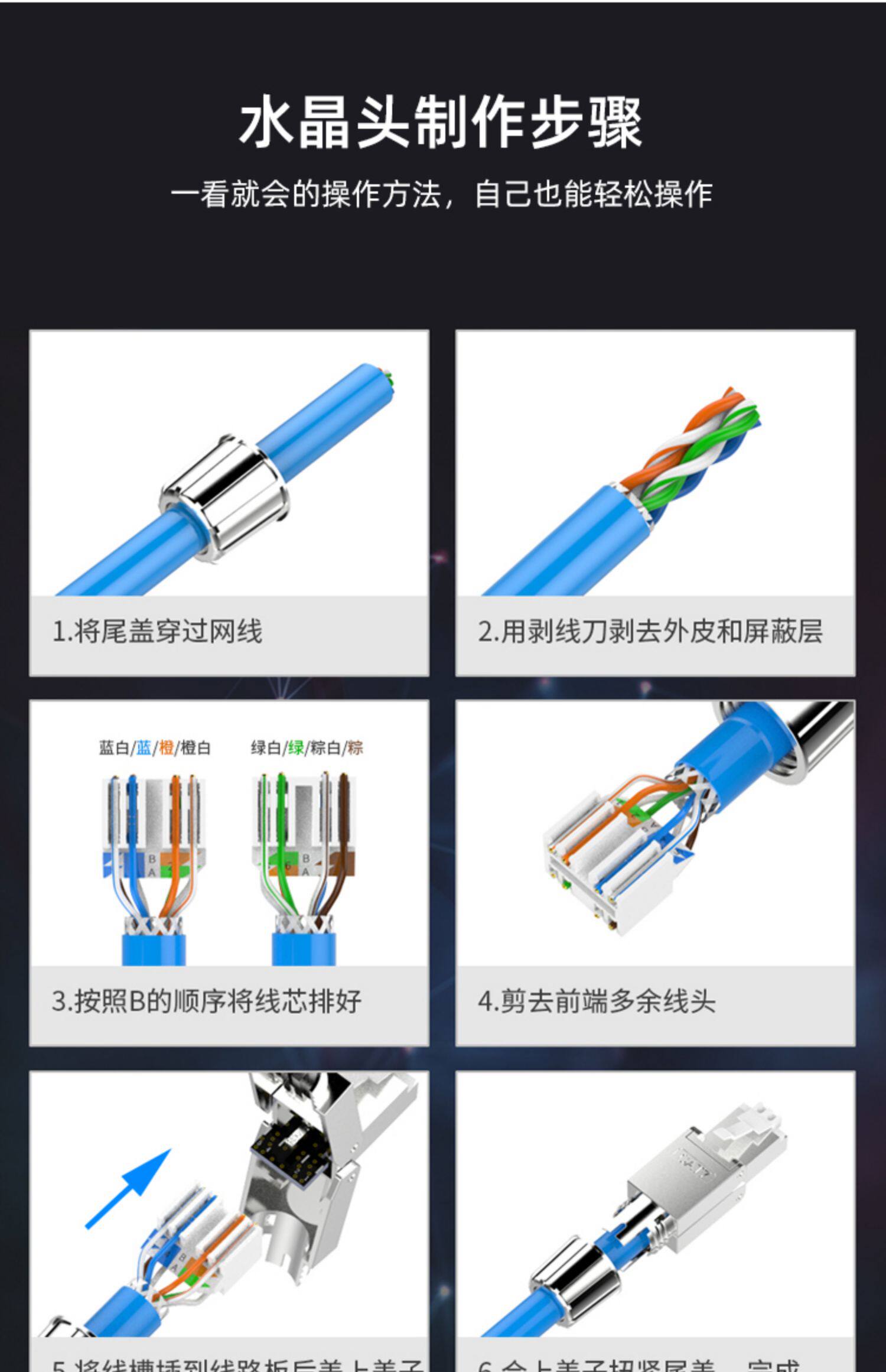 7 -тип инструментов исключения для свободных хрустальных головок на головке подключения пять, 6 6 Гигабитная экранирование хрустальной головки RJ45 Использование домашнего хозяйства