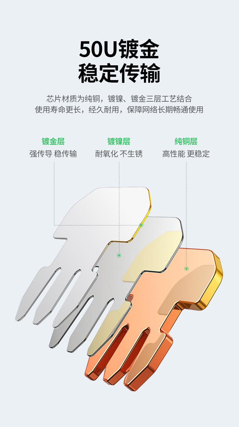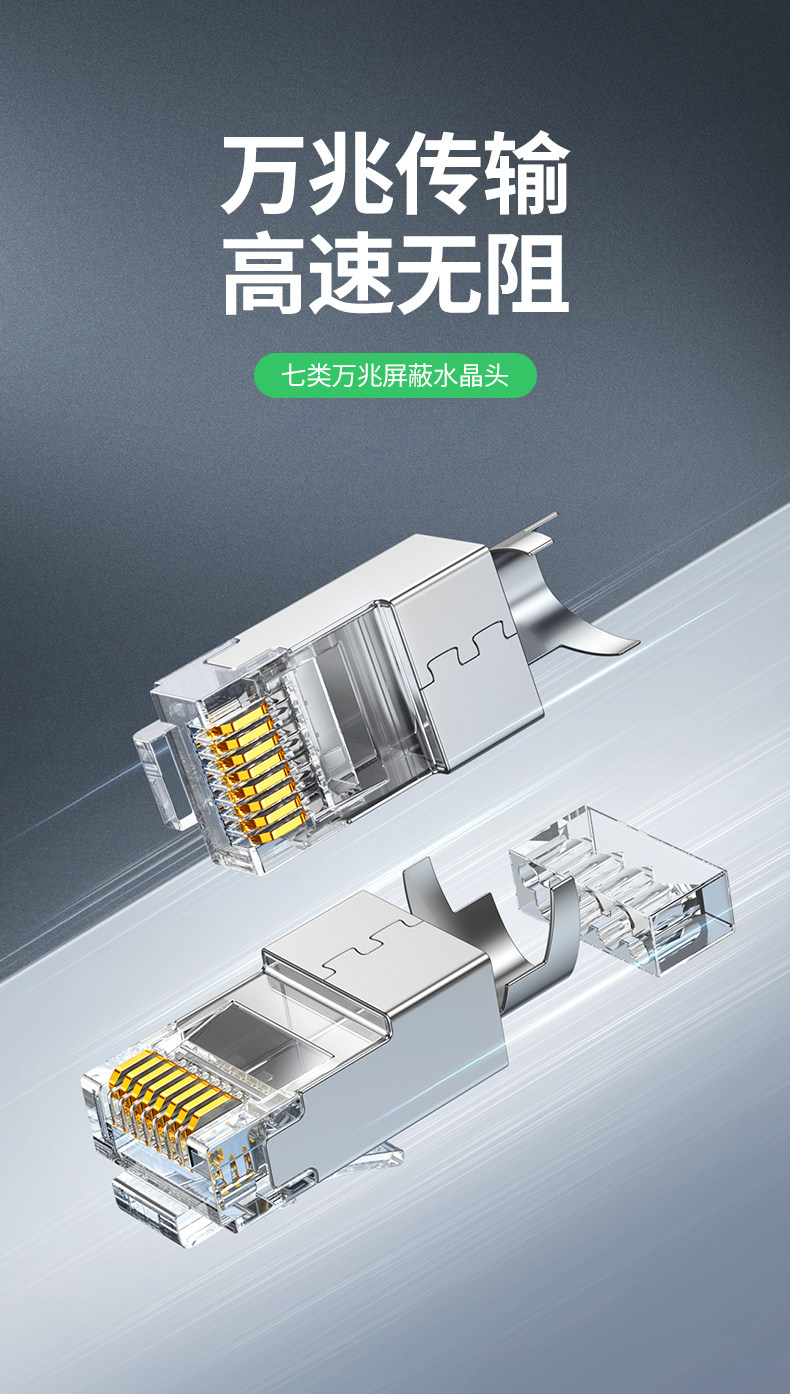 Greenlink категории 7, 50U, позолоченный высокоскоростной сетевой кабель 10G, кристаллический разъем, экранированный сетевой кристаллический разъем RJ45, инженерный класс