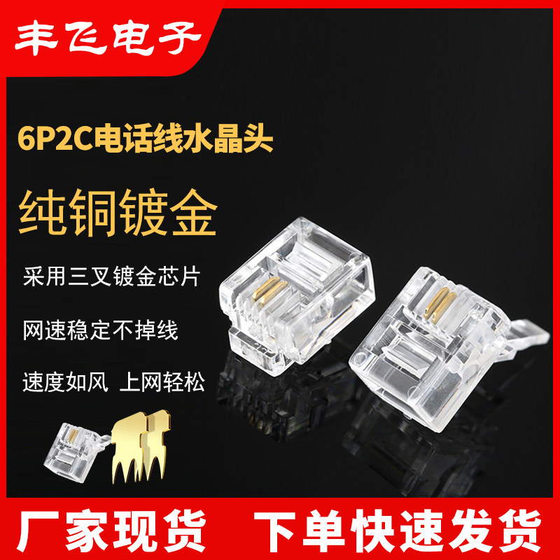 Чистое медное золото, спланированное сетевой линейкой, телефона RJ11 Двухтолетний телефонный разъем 6p2c