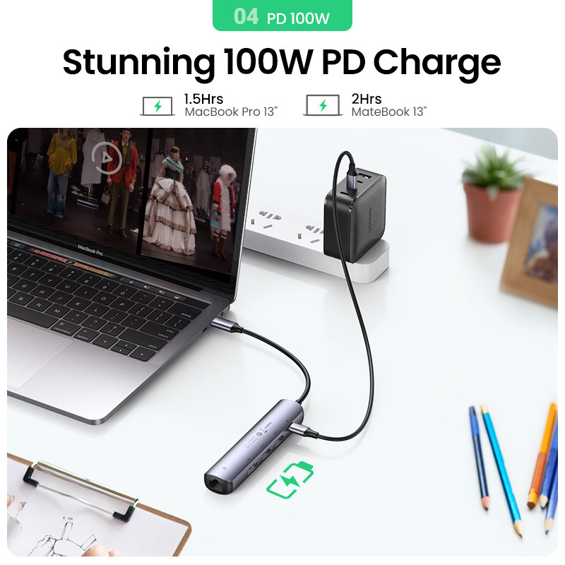 Ugreen USB C Hub Mini Size USB Тип C от 3.1 до 4K HDMI RJ45 PD USB 3.0 OTG Адаптер USB C Dock для MacBook Air Pro 2020 PC USB Hub