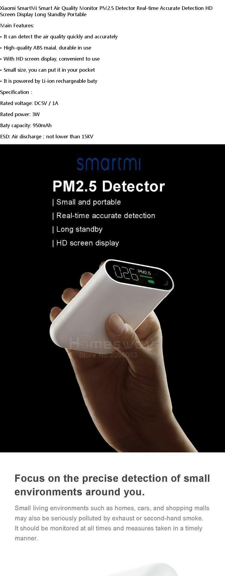 Smiami Smartmi Smart Air Monitor Monitor PM2.5 Detector Real
