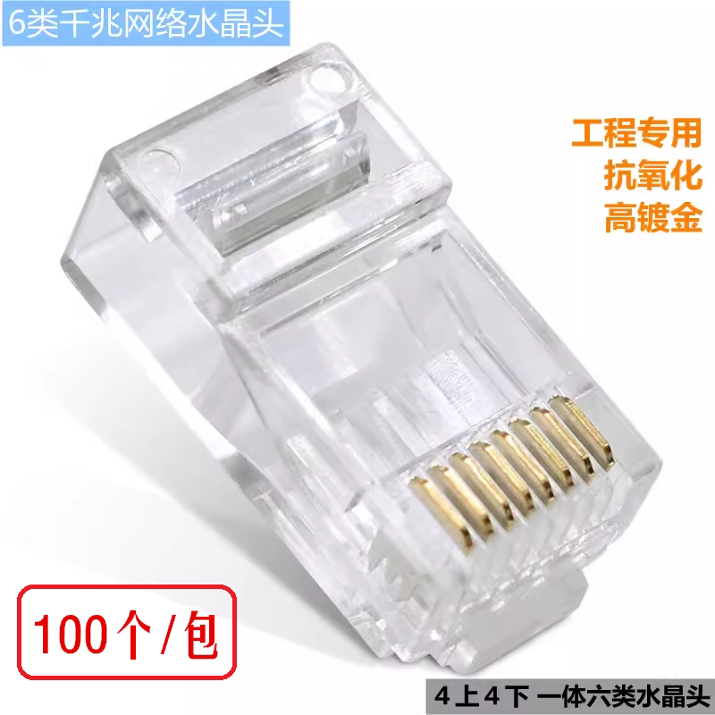Ampkomp Golded с шестиквартированным шестиквартированным сетевым головкой Crystal 6-класс RJ45 сетевой кабельный разъем Gigabit 8-ядерная головка 8p8c