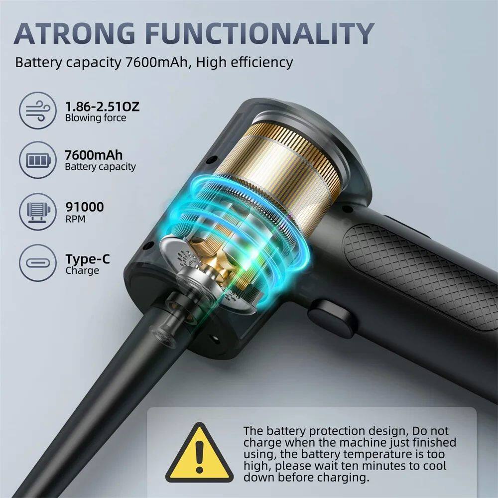 Электрическая форсунка беспроводной воздушной насадки - это легкий вес и небольшой размер, дизайн и удобный для удержания и экономия места, удобно для ношения. Различные сайты очистки, замените соответствующий, с сильным ветром, очистка легче и может использоваться несколько раз.