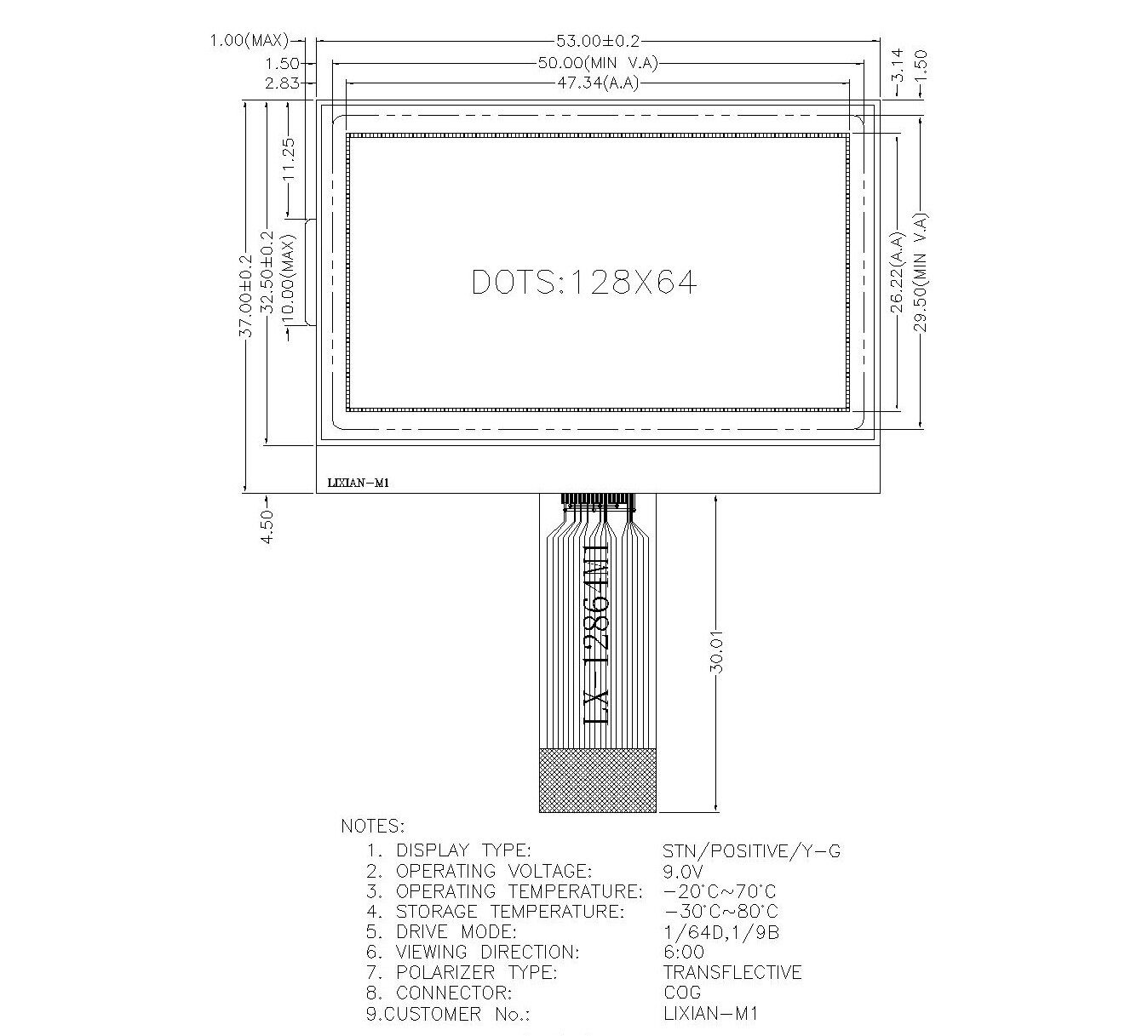 LX-12864M1 Желто-зеленая пленка LCD12864 Point LCD-дисплей COG3.3V Полупрозрачный ЖК-экран