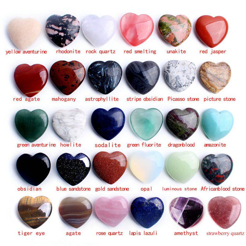 | Цвет: | Rhodonite heart, Tigereye heart, Obsidan heart, Unakite heart, Rock quartz heart, Gold sand heart, Blue sand heart, Sodalite heart, Africa blood heart, Rose quartz heart, Red jasper heart, Aventurine heart, Red smelting heart, Luminous heart, Howlite heart, Mahogany heart, Picasso stone heart, Picture stone heart, 1 Orange aventurine, Amethyst heart, Lapis lazuli heart, Astrophyllite |