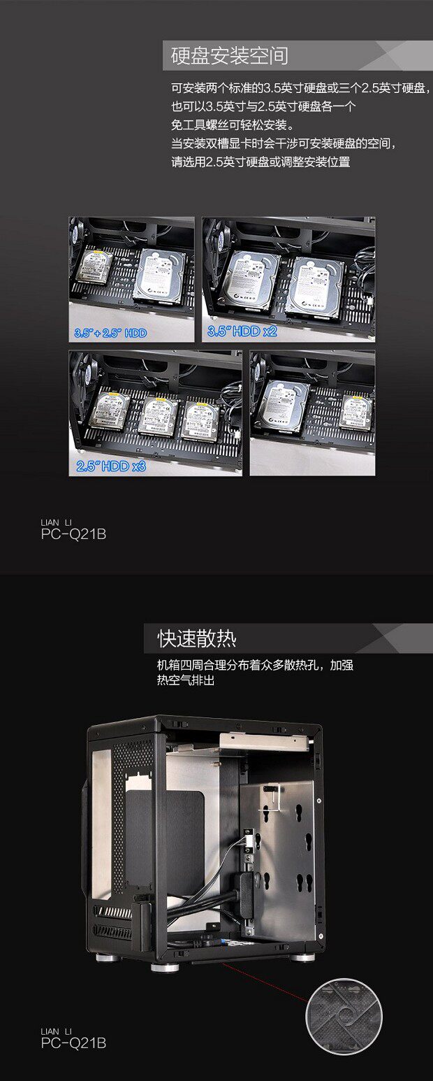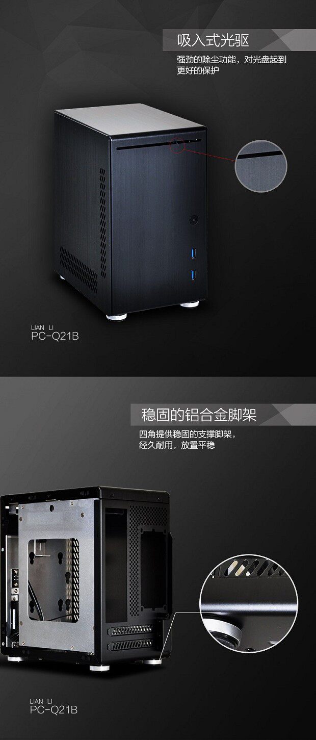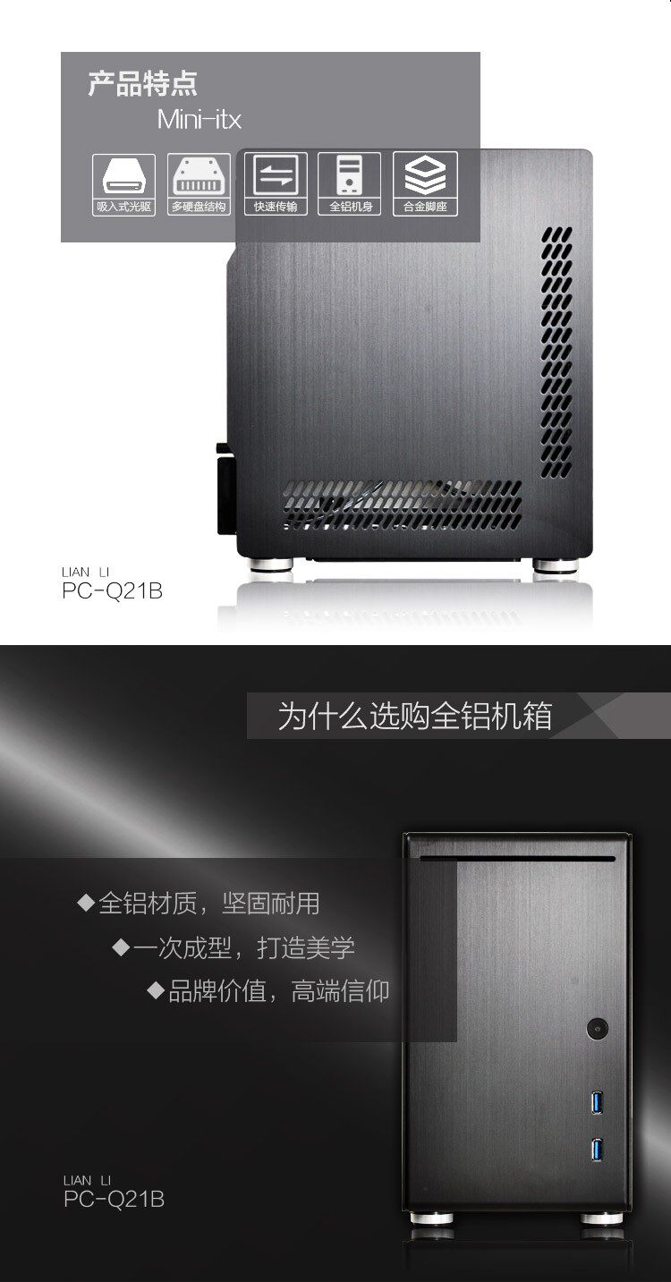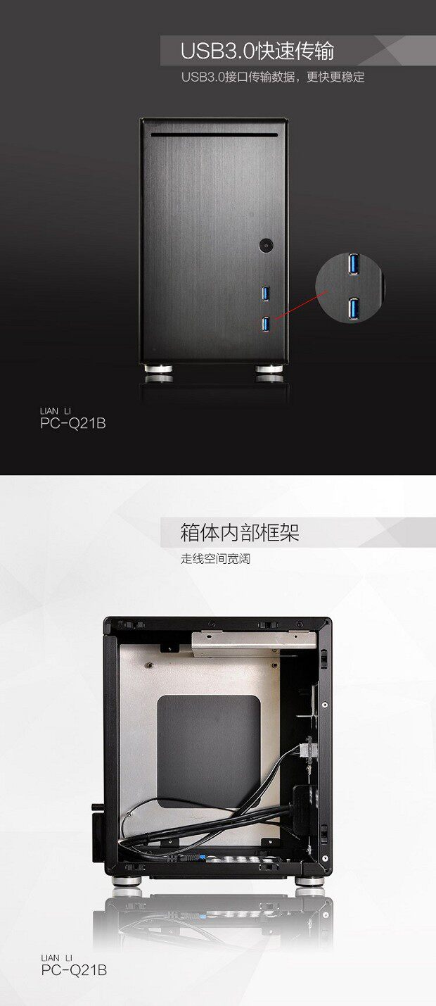 Черный корпус Mini-ITX LIANLI (полностью алюминиевый корпус/основание жесткого диска внизу/двойной порт USB на передней панели)