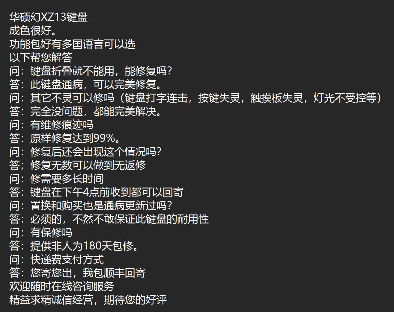 华硕 Fantasy x Keyboard Asus Rog Fantasy XZ13 Продажа, ремонт и замены клавиатуры не будет отключено.