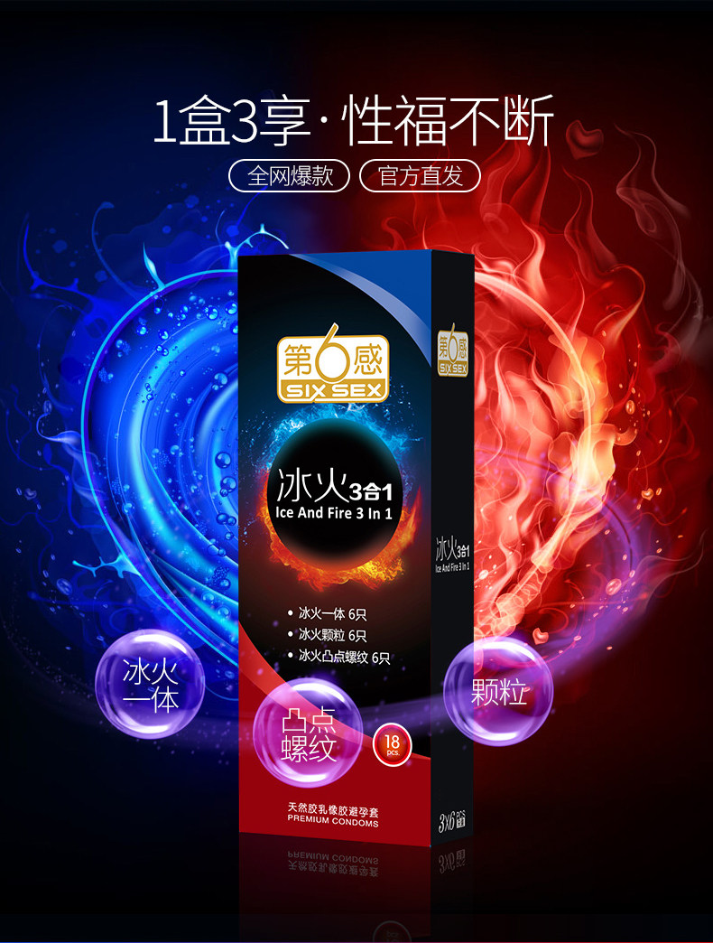 Шестой сенсорный презерватив Лед и огонь -в одном, два небесных веселых презерватива с длинными нитями большие гранулы ультра -типичные