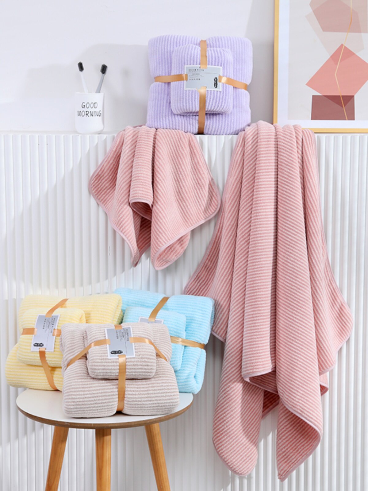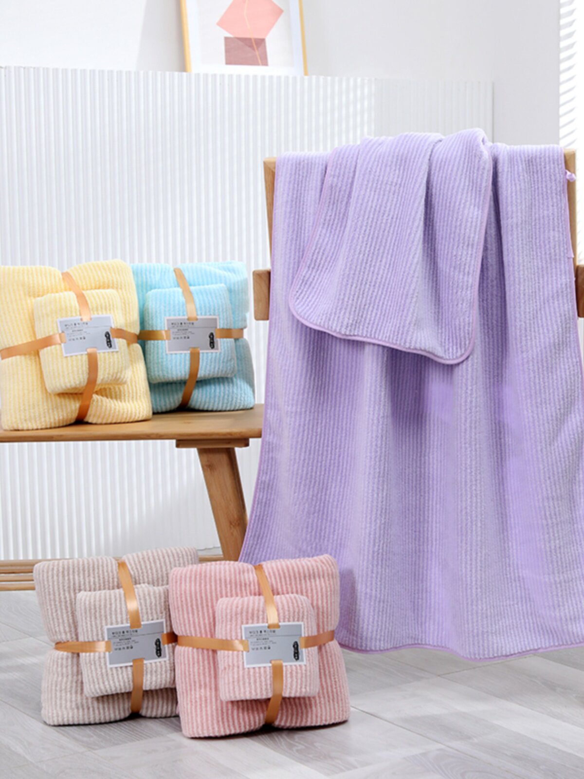 | Цвет: | Розовое банное полотенце, Синее банное полотенце, Сиреневое банное полотенце, Желтое банное полотенце, Цветная полоса полотенце полотенце + легкий кофе для полотенца |