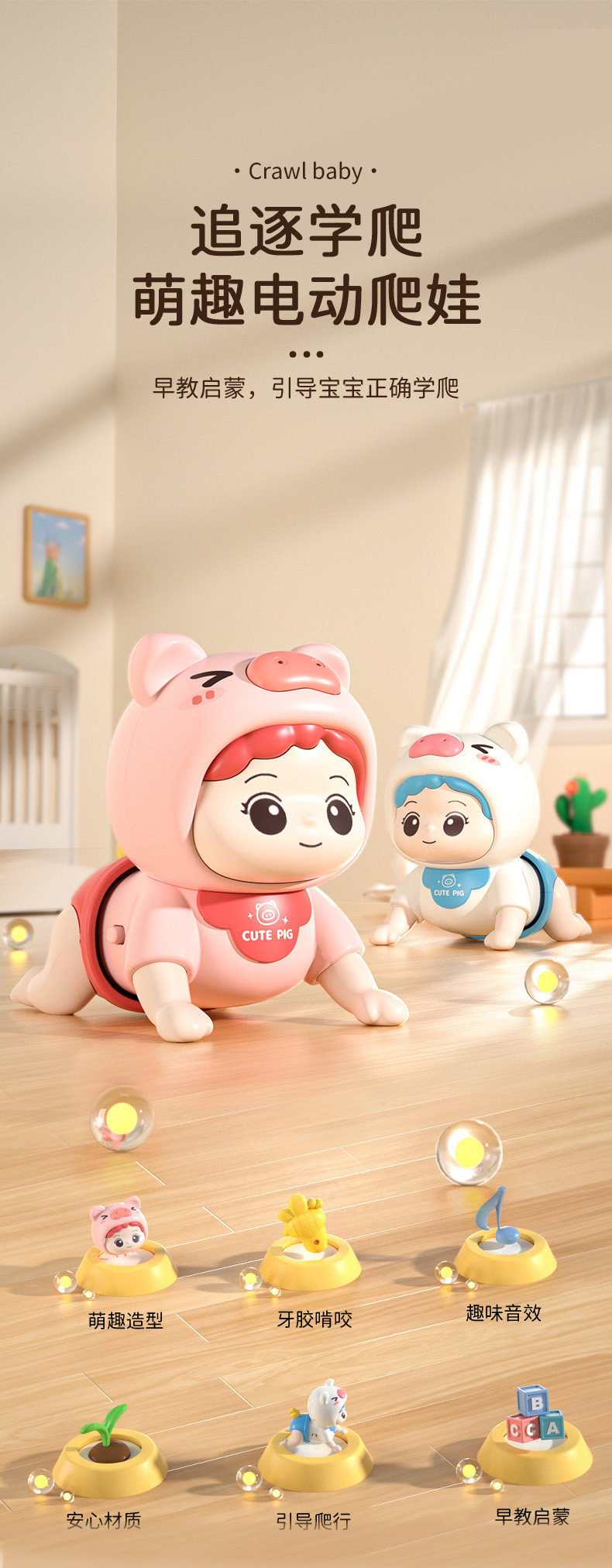 Игрушка, практика для ползания для тренировок для новорожденных, электрическая кукла, 1 лет, раннее развитие
