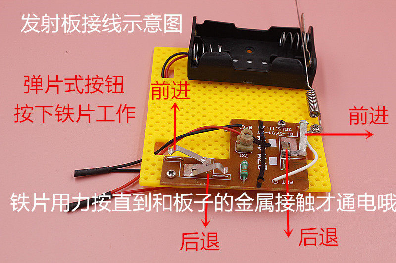 Проводка; Белая голова с железным кольцом - антенна. Синий желтый подключен к мотору 1; Белый зеленый соединен с двигателем 2;Красные и черные подключены к источнику питания, положительные и отрицательные электроды не могут быть связаны неправильно, красный - положительный электрод, красный провод подключен к батарейке красной проволоки, черный провод подключен к батарейке Black Wire, не помните неправильно подключаться к рисунку для пульта дистанционного управления, левая плата для моторного, правая плата, не работает, что не работает, что не работает, что не работает. Сначала используйте три ящика для батареи, чтобы проверить двигатель отдельно, если работа является двигателем, вторым является пульт дистанционного управления, вы должны внимательно следить за нашими инструкциями, чтобы подключить двигатель, провод двигателя должен быть затянут, после подключения, включите переключатель на баке, а затем управлять железной пластиной на запускной плате. При нажатии танк пойдет. Мы должны передать двигатель и пульт дистанционного управления после строгого тестирования. Если бак не идет, это проблема с проводкой. Вы должны тщательно проверить схему