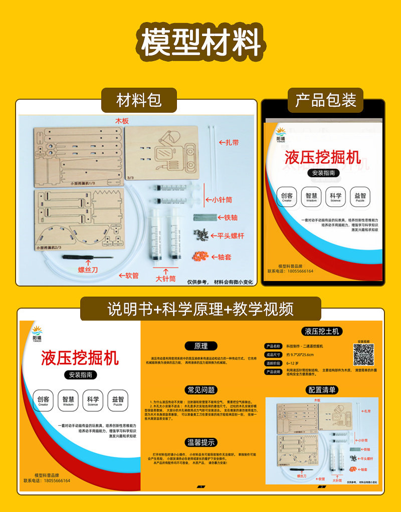 Экскаватор для экспериментов, конструктор для школьников, игрушка, DIY, наука и технология, мини эксперимент