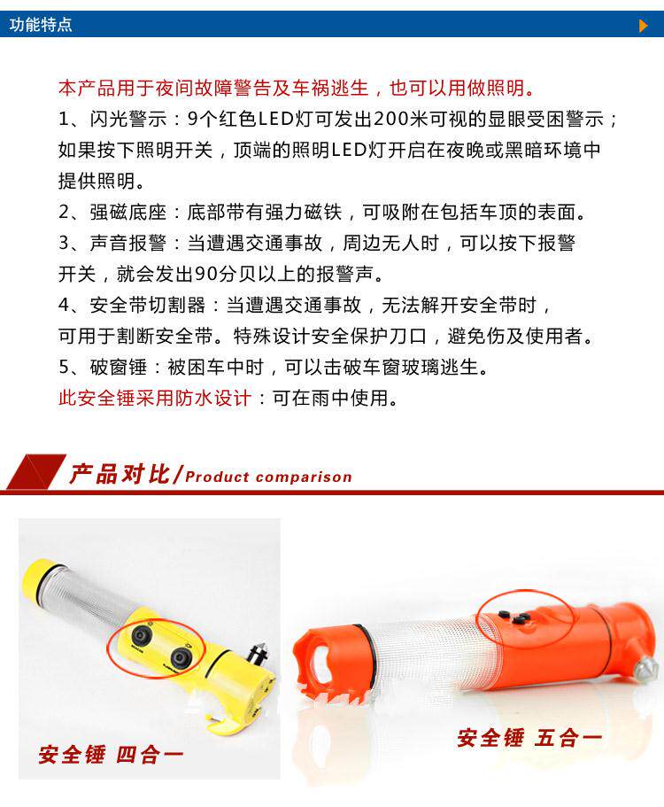 Универсальная безопасная сигнализация, фонарь, блестки для ногтей, спасательный жилет, молоток, мигающий свет